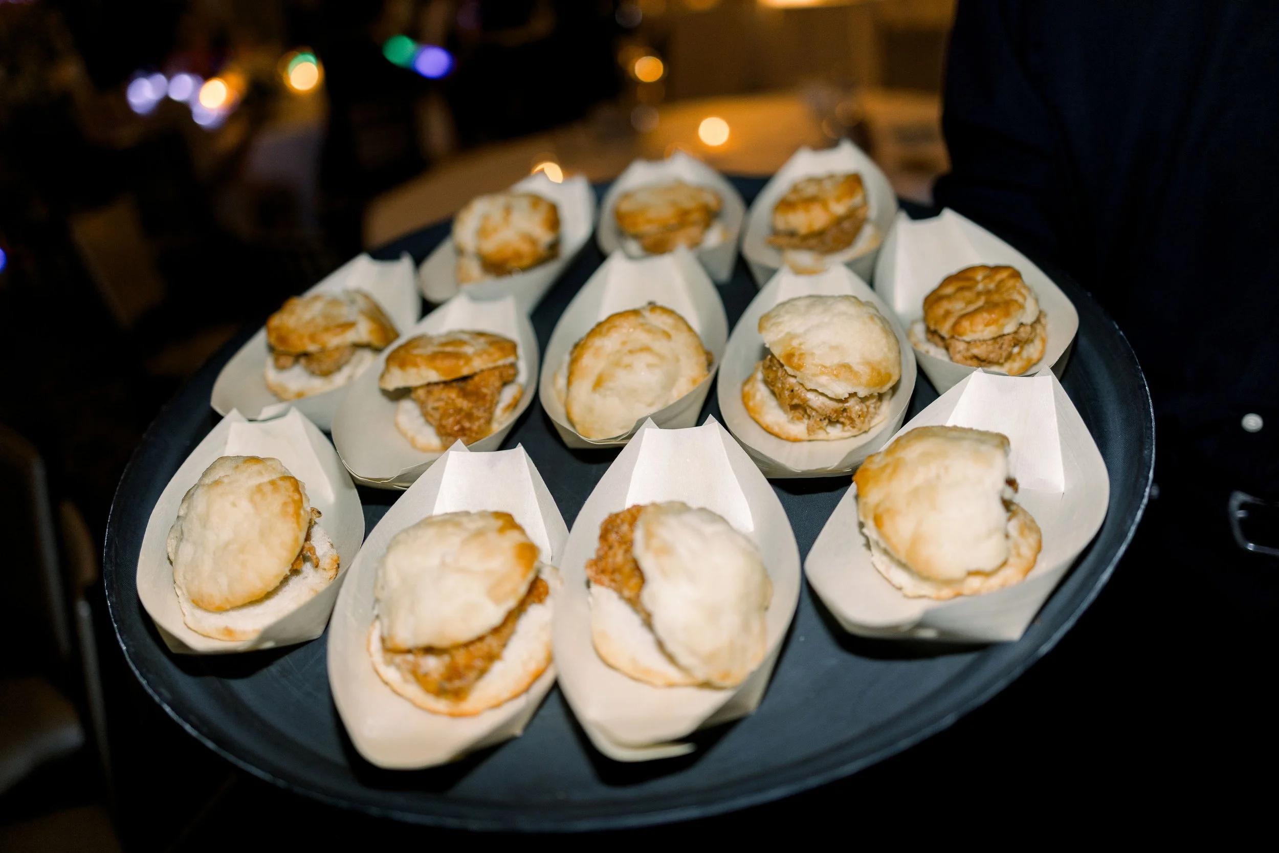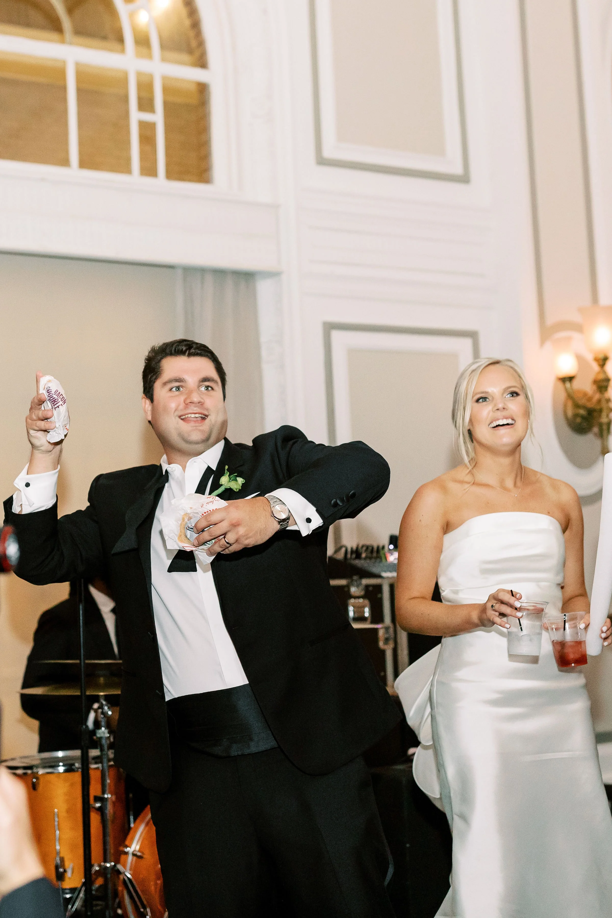 Enhance the guest experience with a “his and hers” signature drink during cocktail hour, complete with a fun name or sign. A late-night snack is another great way to treat your guests—many couples choose this in place of traditional favors.