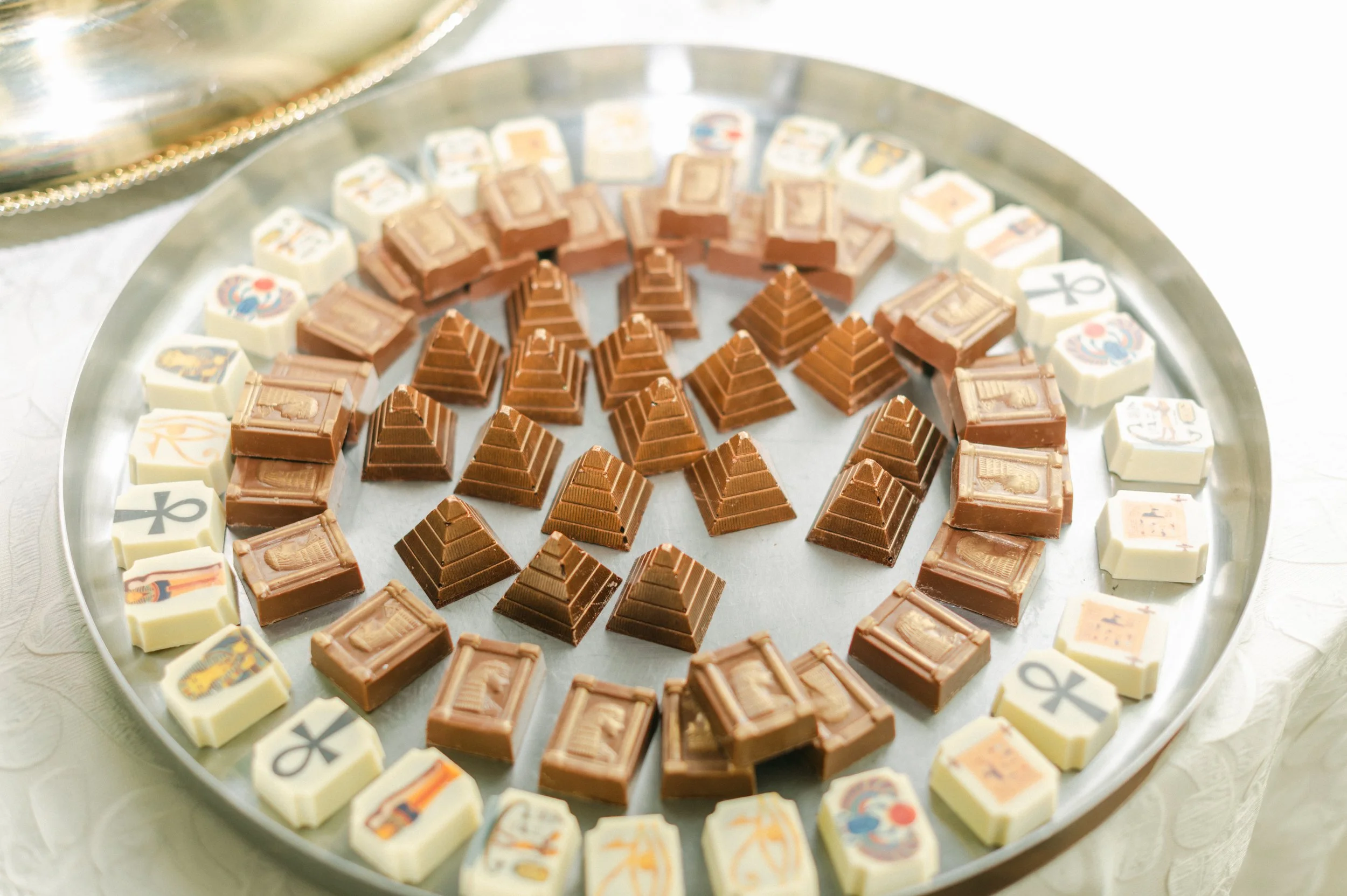Inside the ballroom, the reception and cocktail hour spaces were being transformed by Blosm Designs, Endive Catering, EventWorks, and Emerald Empire Band. Amanda from Just About Love styled the BBJ linens and placed the couple’s personal details throughout the venue.